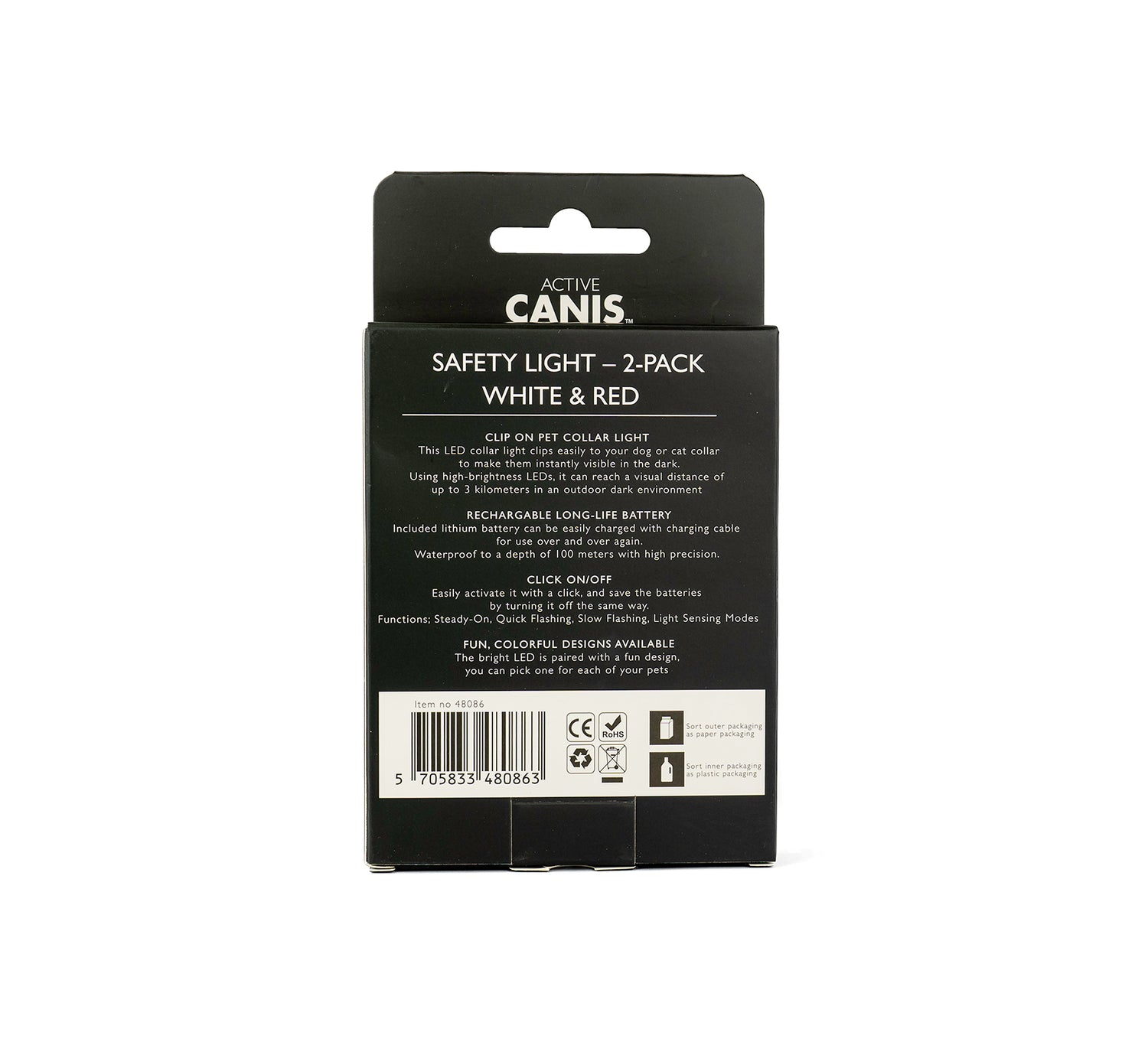 - Med sit fleksible design er sikkerhedslygten let at fastgøre til hundens/kattens halsbånd eller sele.