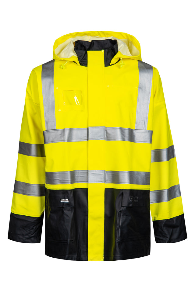 Hi-Vis regnjakke i kraftig PU/PVC kvalitetSaturn Gul / Navy - Lyngsøe Rainwear