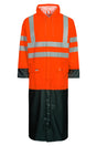 Hi-Vis regnjakke i PU kvalitet, 135 cm langHi-Vis Rød / Sort - Lyngsøe Rainwear