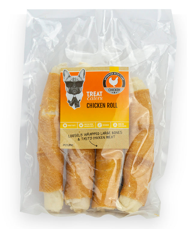 Treateaters Chicken Rolls 23 cm er et lækkert tyggeben overtrukket med kylling, lavet af tørret oksehud og kyllingebrystfilet af høj kvalitet. Disse tyggeben er kornfri og hjælper med at opretholde en god tandhygiejne. Velegnet til hunde fra 12 måneder og ældre. Treateaters Chicken rolls er populære tyggeben til hunde, der kombinerer tørret oksehud med et lækkert kyllingebrystfilet, hvilket giver en velsmagende og langvarig tyggeoplevelse. Fordele ved chicken rolls: