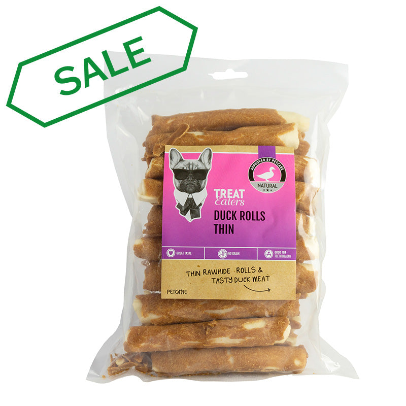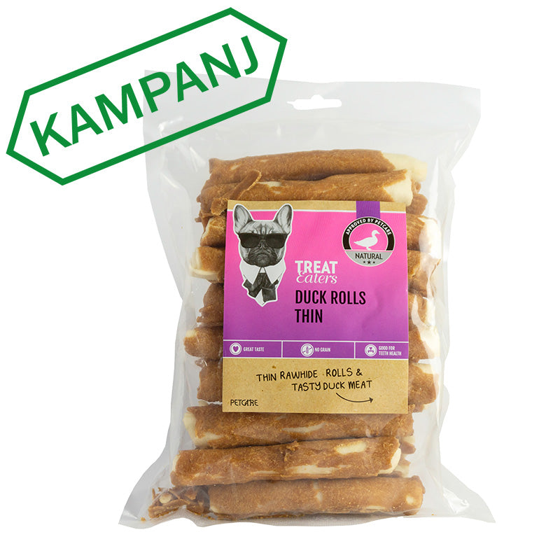 Oplev glæden i hvert eneste tyg med Duck Rolls fra Treateaters - de ultimative tyggestænger til din hund! Vores Duck Rolls er uimodståeligt forførende, dækket af generøse lag af tørret and, der får hunde til at juble af glæde. Hver tyggestang er hele 12,5 cm lang, og i hver pakke finder du hele 400 g af disse lækkerier at nyde.