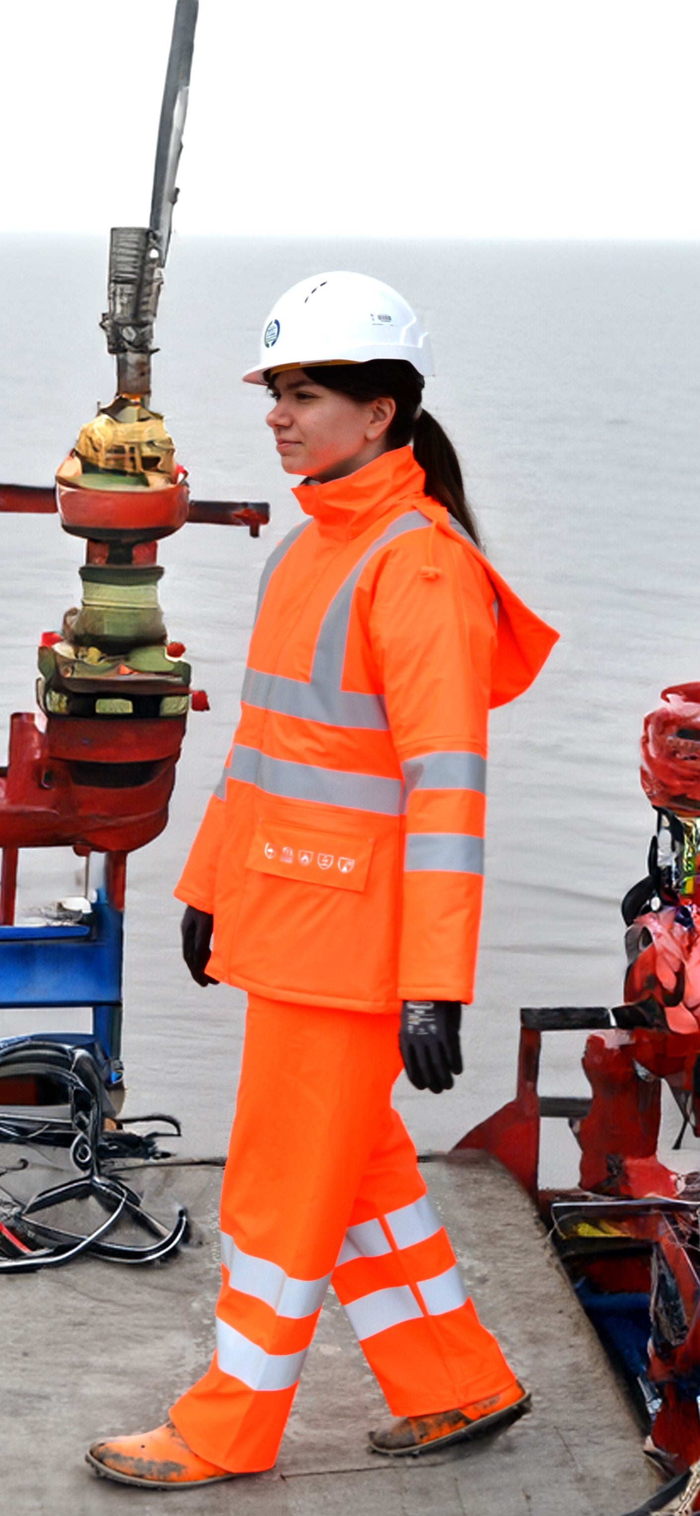 Brandhæmmende Hi-Vis regnbukser i PU kvalitet til kvinderHi-Vis Orange - Lyngsøe Rainwear