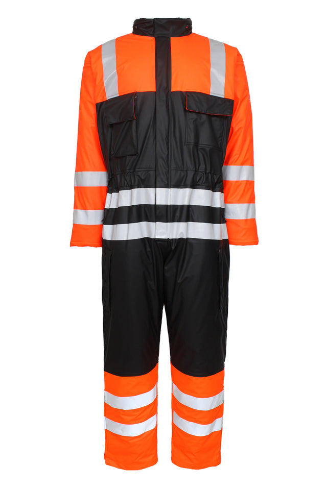 Brandhæmmende Hi-Vis vinterkedeldragt i PU kvalitet med quiltet foerHi-Vis Orange / Navy - Lyngsøe Rainwear