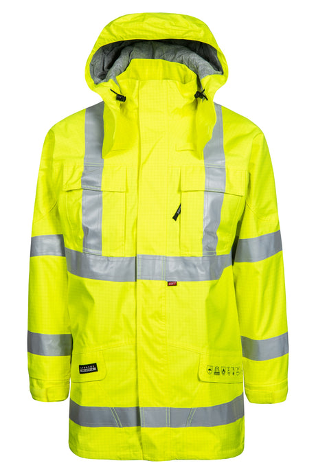 Åndbar Hi-Vis regnjakke, beregnet til klatrebrug