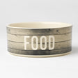 Farm Dog, FOOD stentøjsskål i Natural / Grey har en kapacitet på 7 dl. Denne skål har et rustikt træplankedesign, der er viklet rundt om ydersiden. Ordet FOOD er tydeligt skrevet og centreret på forsiden, og der er en knogleformet grafik i inderskålen. • Håndlavet stentøj • Kan vaskes i opvaskemaskinen • Tåler mikrobølgeovn