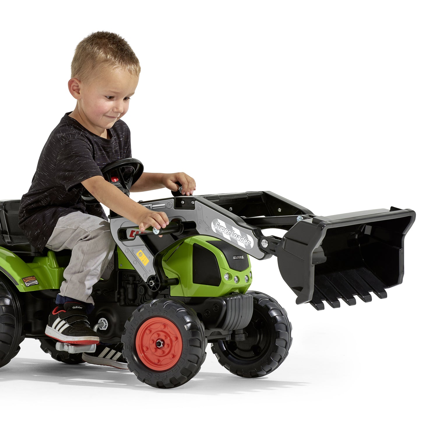 Tilføj endnu flere muligheder for leg til legeprodukterne for de 2 til 5-årige Falk-pedaltraktor med denne fuldt leddelte SuperLoader frontlæsser.