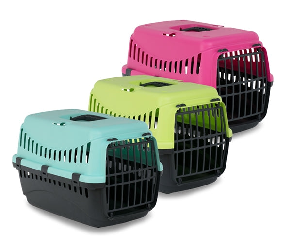 To størrelser tilpasset forskellige kæledyr ● Let at bære med håndtag på låget ● Robust plastdør/gitter ● Ideelt til transport af kæledyr