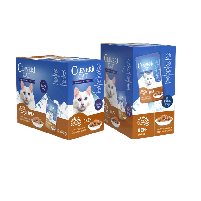 Giv din kat Clever Cat Vådfoder med oksekødssmag – et velsmagende og nærende måltid, den vil elske!