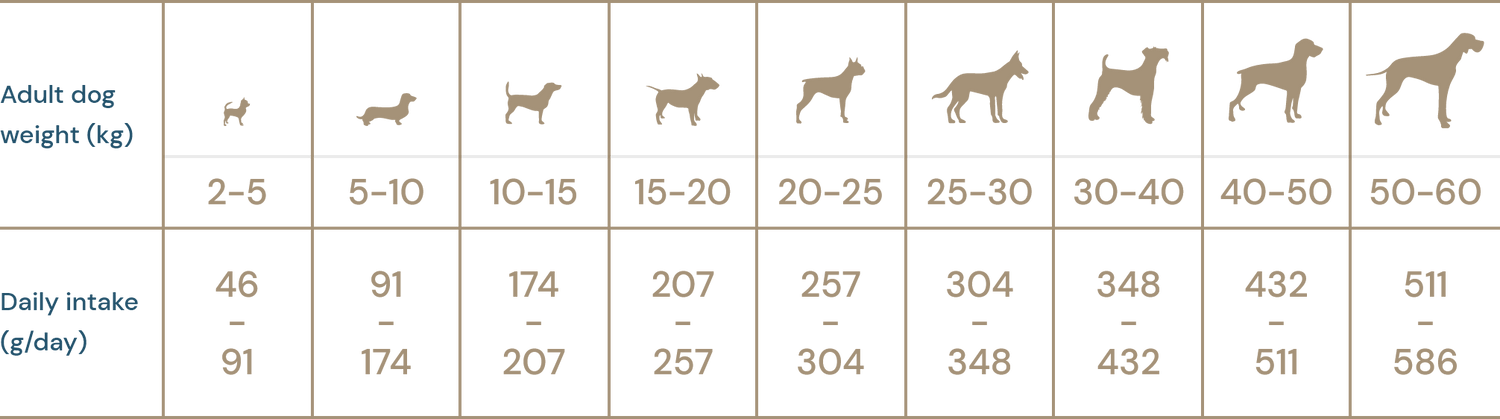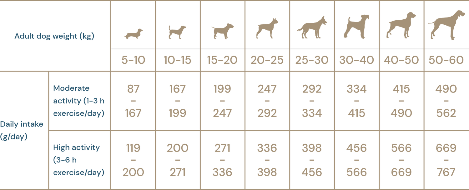 Server maden tør. Frisk vand skal være tilgængeligt hele tiden. Indfør nye produkter gradvist, i det mindste over 5 dage med stigende daglig dosis, indtil den anbefalede mængde er nået.