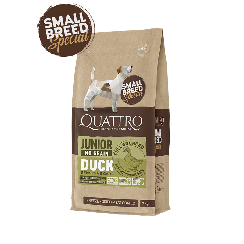 Super premium hvalpefoder kornfri små racer Junior med and - Quattro