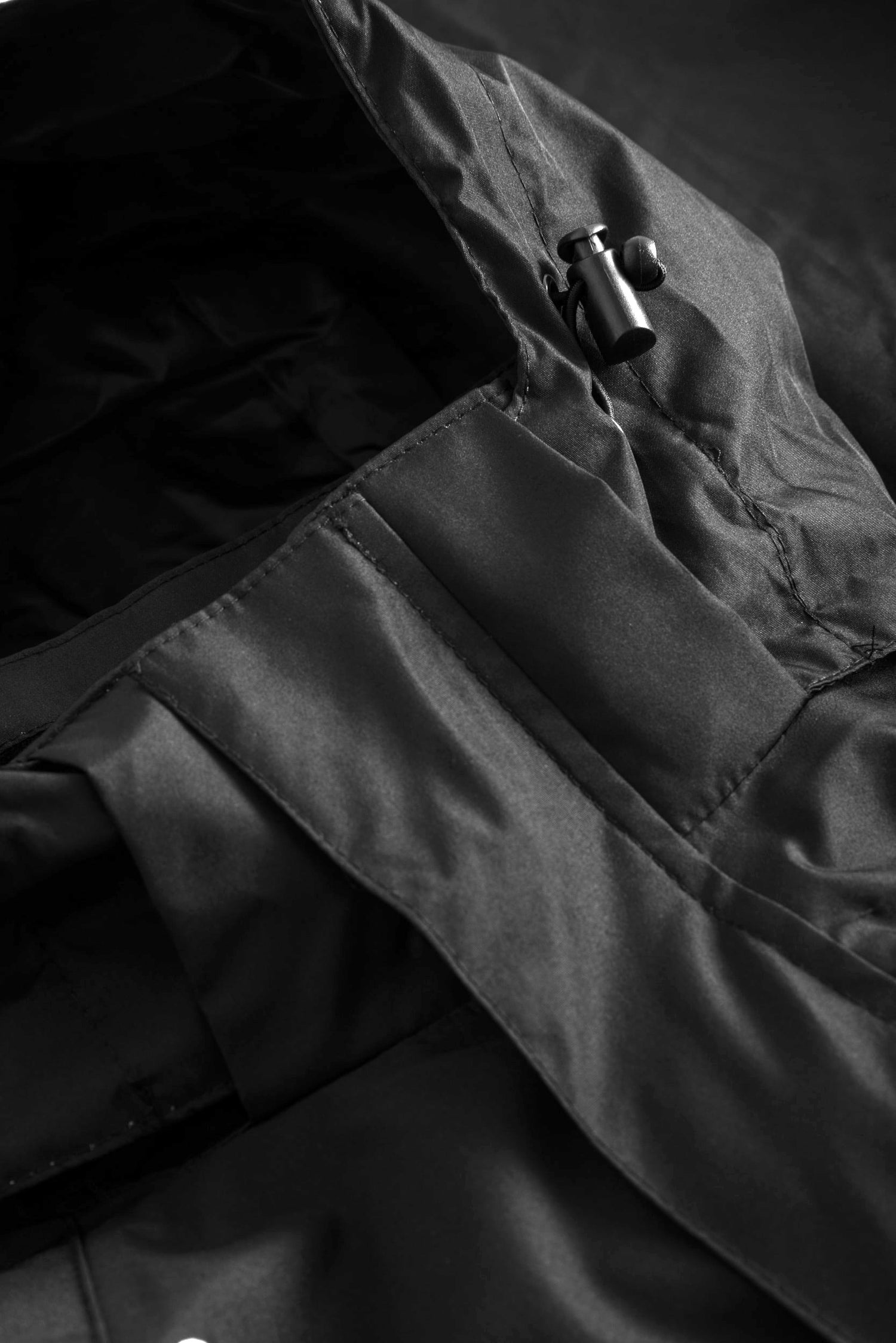 Aftagelig hætte med trykknapper og elastik snøre