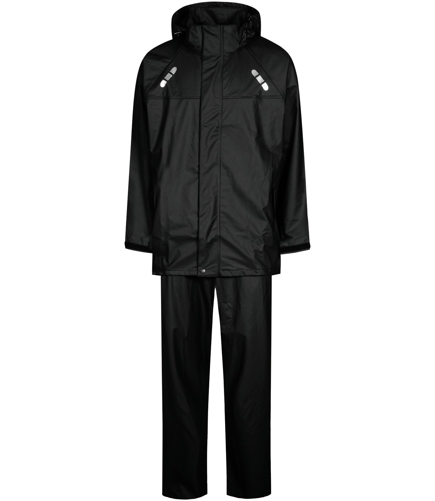 Regnsæt med jakke og bukser i PU kvalitetSort - Lyngsøe Rainwear