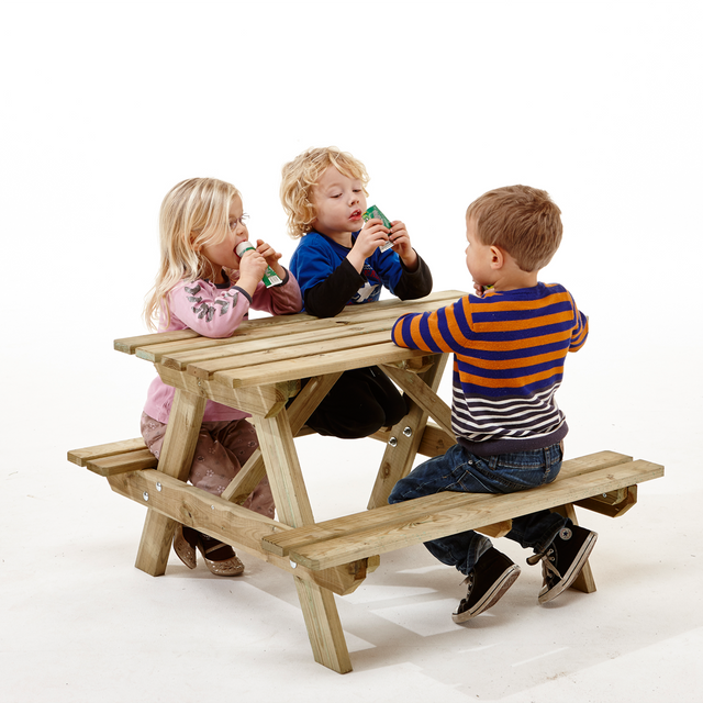Børne bord-/bænksæt i trykimprægneret træ. Stel 28 mm tykkelse. sæder og bordplade i 20 mm tykkelse.