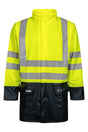 Brandhæmmende Hi-Vis regnjakke i PU kvalitetSaturn Gul / Navy - Lyngsøe Rainwear