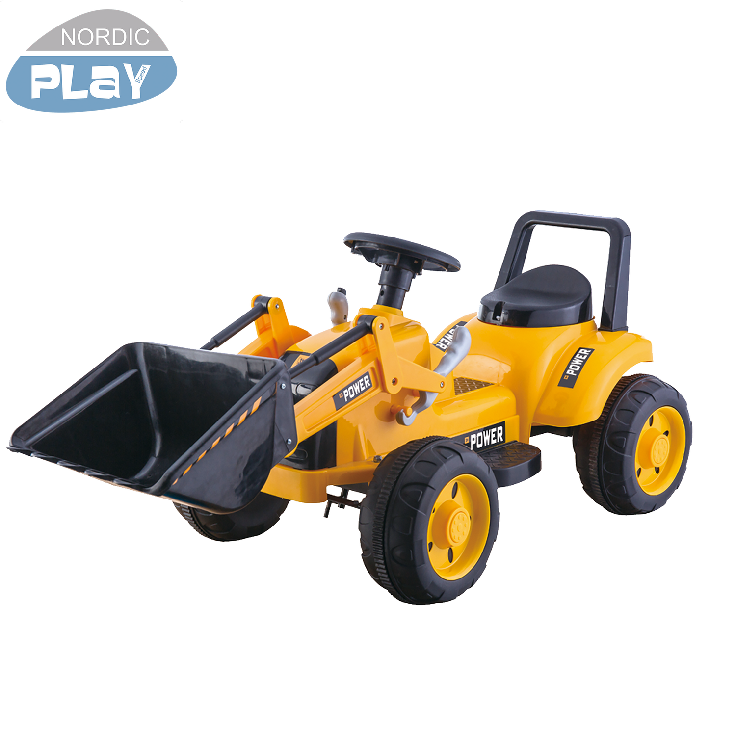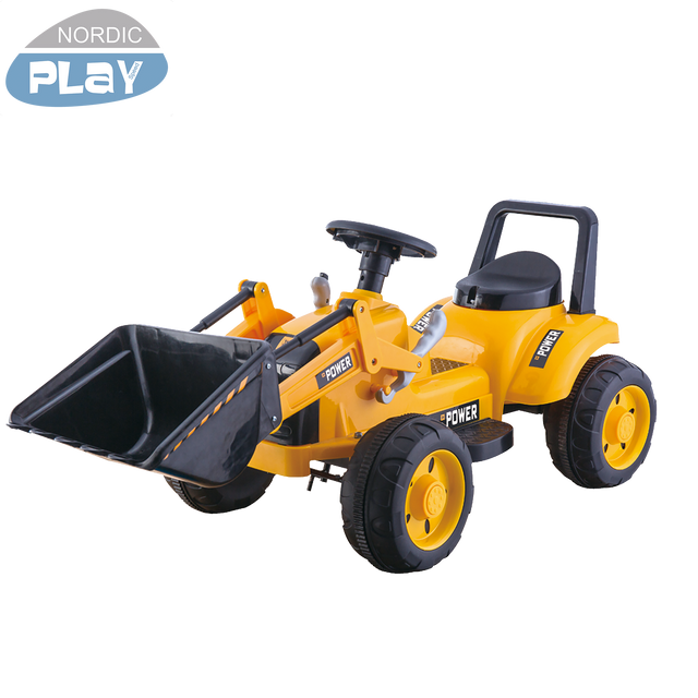 Få styr på gården eller haven med en elektrisk traktor med frontlæsser fra NORDIC PLAY til børn. Frontlæsseren kan flytte legetøj, da den er udstyret med løftearm og graveskovl. Et sjovt produkt med lyde i rattet, og hvor graveskovlen kan hæves og sænkes med det venstre håndtag, mens højre håndtag betjener spandemekanismen.