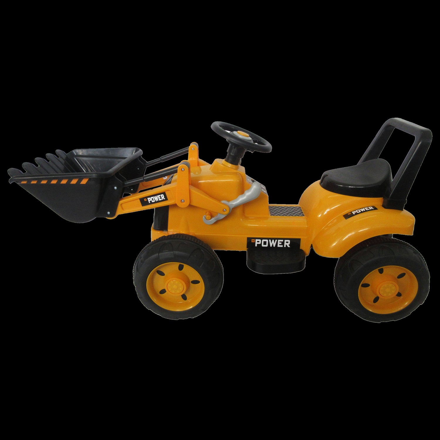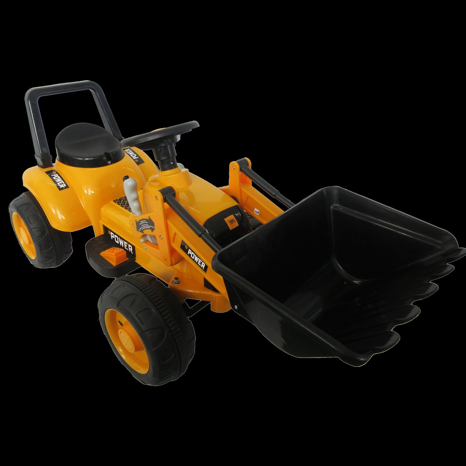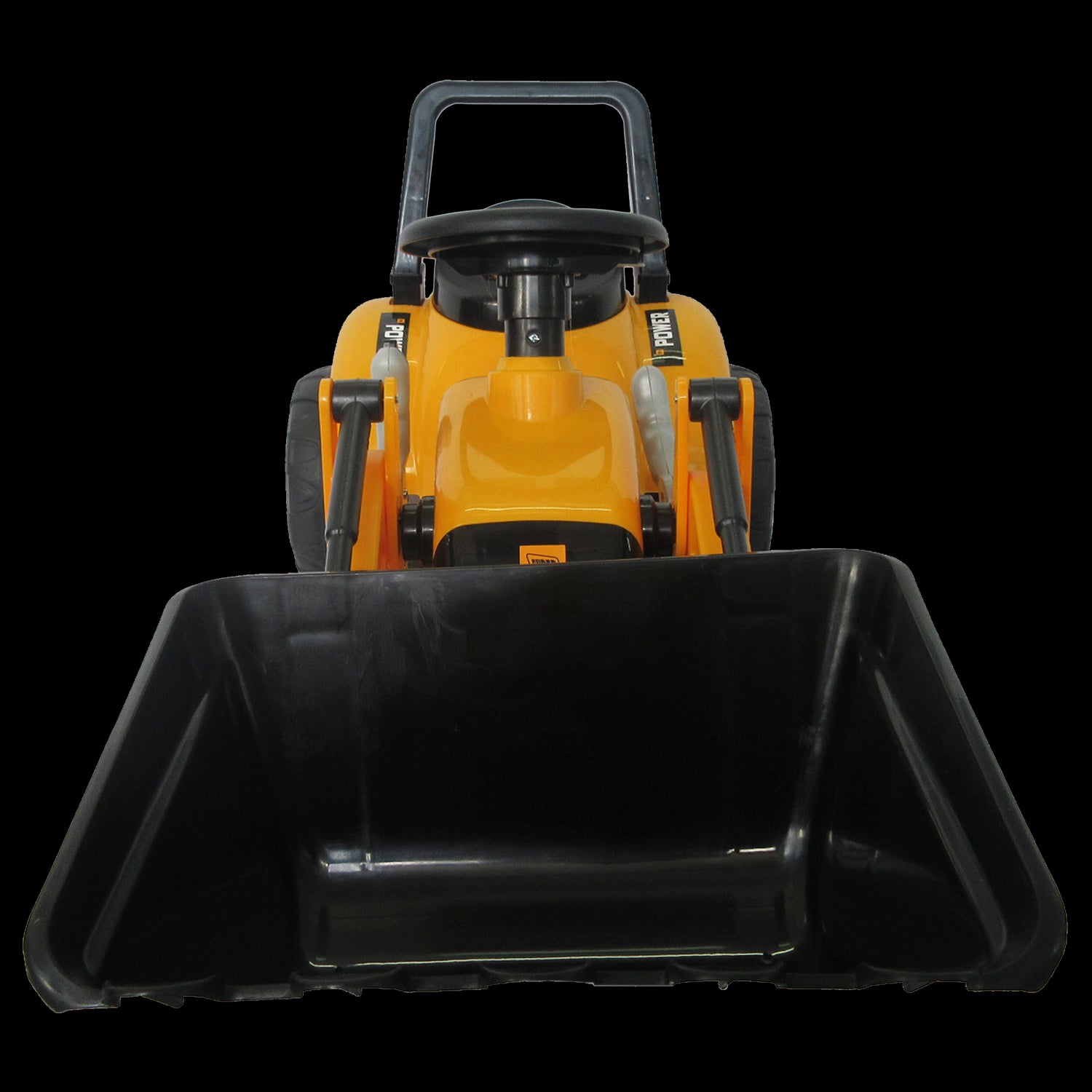 Frontlæsseren er produceret i den velkendte gule traktor farve. Den er udstyret med et 6V batteri og en motor på 22W. Endvidere har den styrebøjle bagtil for mere sikkerhed.
