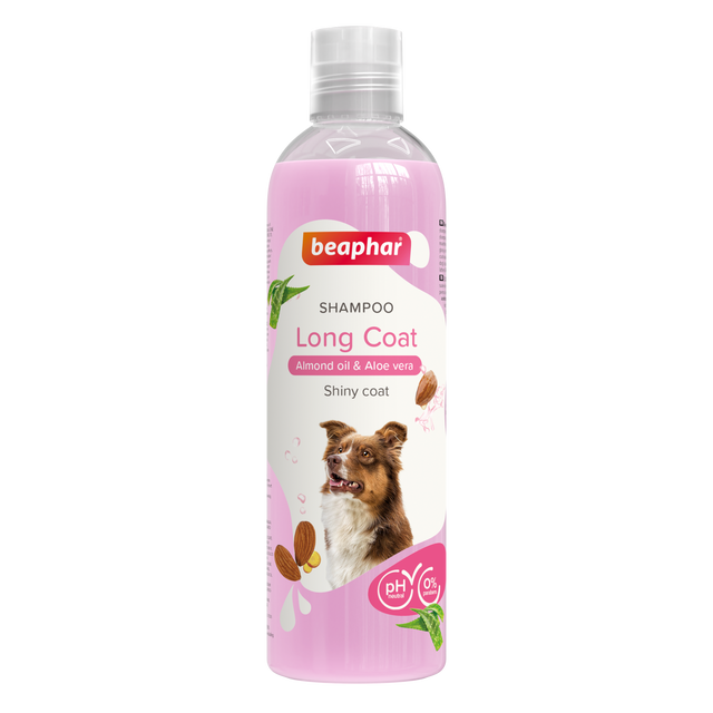 Ved at bruge Beaphar shampoo vasker du nemt snavs og støv væk, som sætter sig i pelsen, kan forårsage ubalance i huden og få pelsen til at se mat og glansløs ud. Uden regelmæssig vask kan bakterier trives i denne snavsede olie, hvilket fører til en ubehagelig lugt hos dit pelsdyr. Regelmæssig rengøring hjælper også med at slippe af med lus og lopper, hvilket bidrager til at holde dit dyr sundt og veltilpas. Beaphar shampoo long fur passer til hunde med lang pels. De tilsatte frugtaromaer giver pelsen en sund og skinnende effekt. Pelsen bliver let at rede, knuder mindskes, og skader på håret forhindres gennem shampooen. Produktet indeholder mandelolie og aloe vera. Produktet indeholder milde overfladeaktive stoffer, som effektivt fjerner olie, snavs og fedt fra hud og hår. Den har en pH-værdi, der er neutral eller let alkalisk, hvilket gør den specielt tilpasset til kæledyrs hud. Efter brug bliver pelsen skinnende, velduftende og langvarigt frisk. Produktet indeholder 0 % parabener og silikoner, hvilket gør den skånsom og sikker for dit kæledyr. Desuden leveres den i en genanvendelig flaske lavet af 50 % bæredygtig rPET. Anvendelse: Hvis dit pelsdyr er sundt, anbefales det at bade det en gang om ugen. Frekvensen kan dog variere afhængigt af race, pels, alder og aktivitetsniveau. Hvorfor kan du ikke bruge almindelig shampoo, som står i badeværelset? Vores hundeshampoo har en anden pH-værdi og indeholder ikke parfume, i modsætning til almindelig shampoo, der er tilpasset mennesker. At bruge menneskeshampoo kan forstyrre pH-balancen i hundens hud, hvilket kan føre til tørhed, skæl og gøre huden mere sårbar. Instruktioner: Fugt pelsen med varmt vand og massér derefter shampooen grundigt ind. Lad den virke i cirka 2-3 minutter, før du skyller grundigt. Tør derefter pelsen grundigt. Vær opmærksom på at undgå kontakt med øjne, næse og slimhinder.