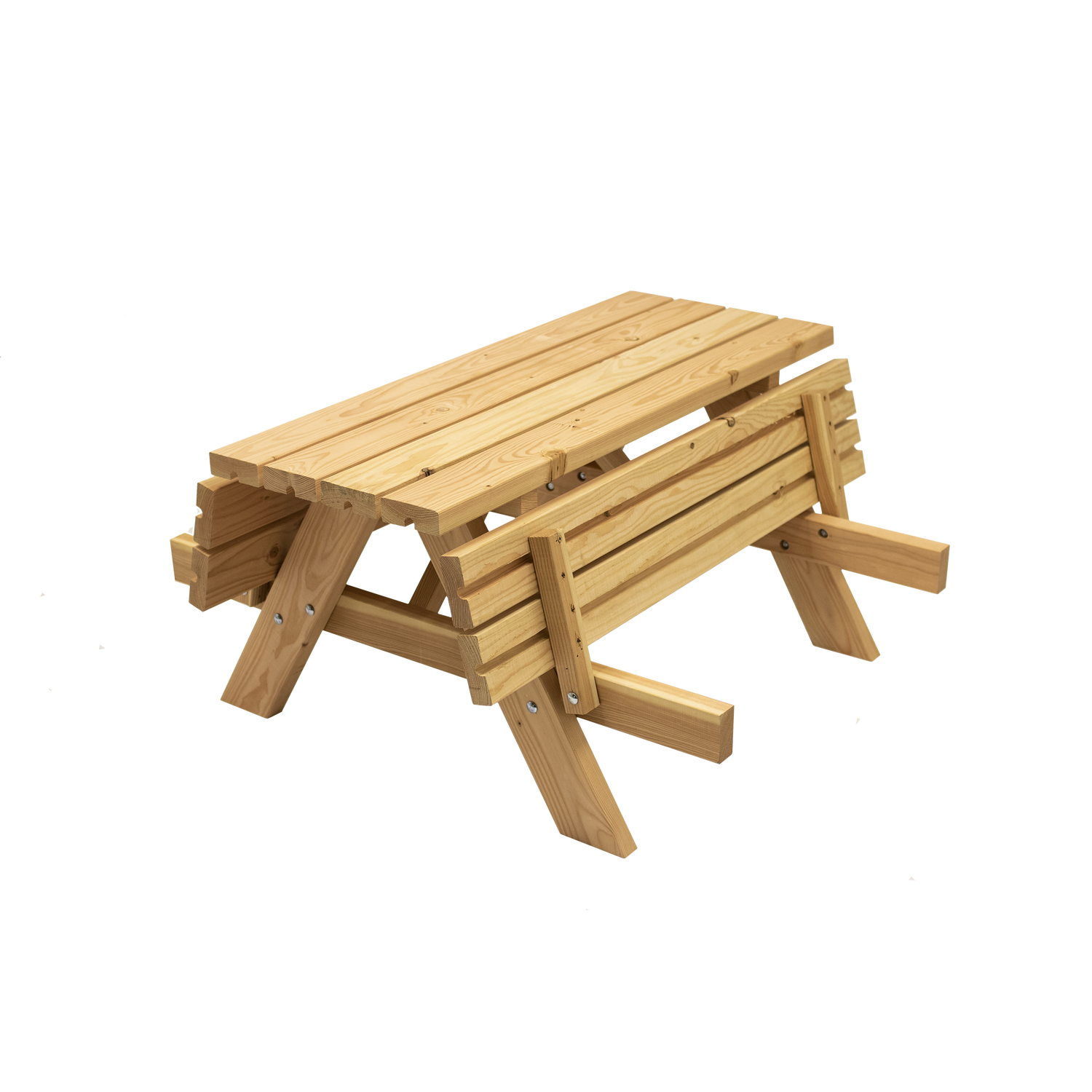 Junior bordbænkesæt i douglas træ. Sæder og bordplade i 42 mm tykkelse. 60 x 129 x 120 cm. Pakket i samlesæt. Samlevejledning indlagt. Nem at samle. Målrettet de større børn fra børnehave alderen og de første år i skolen. Sættet har god benplads med en afstand mellem kant på bordplade og sæde på hele 19 cm.