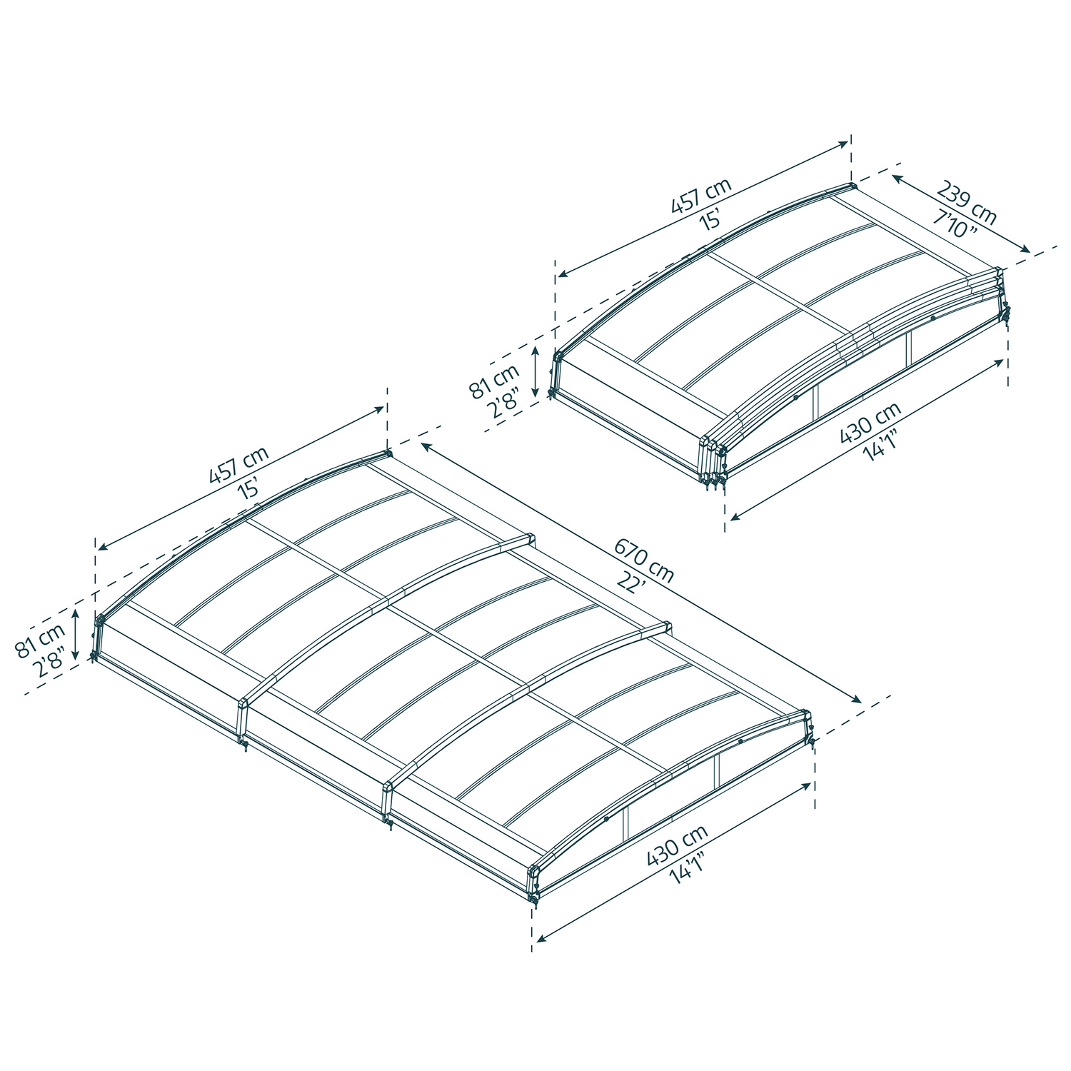 Mål: Overdækningen måler 4,58 x6,69 m og passer til pools op til 4x6 m.