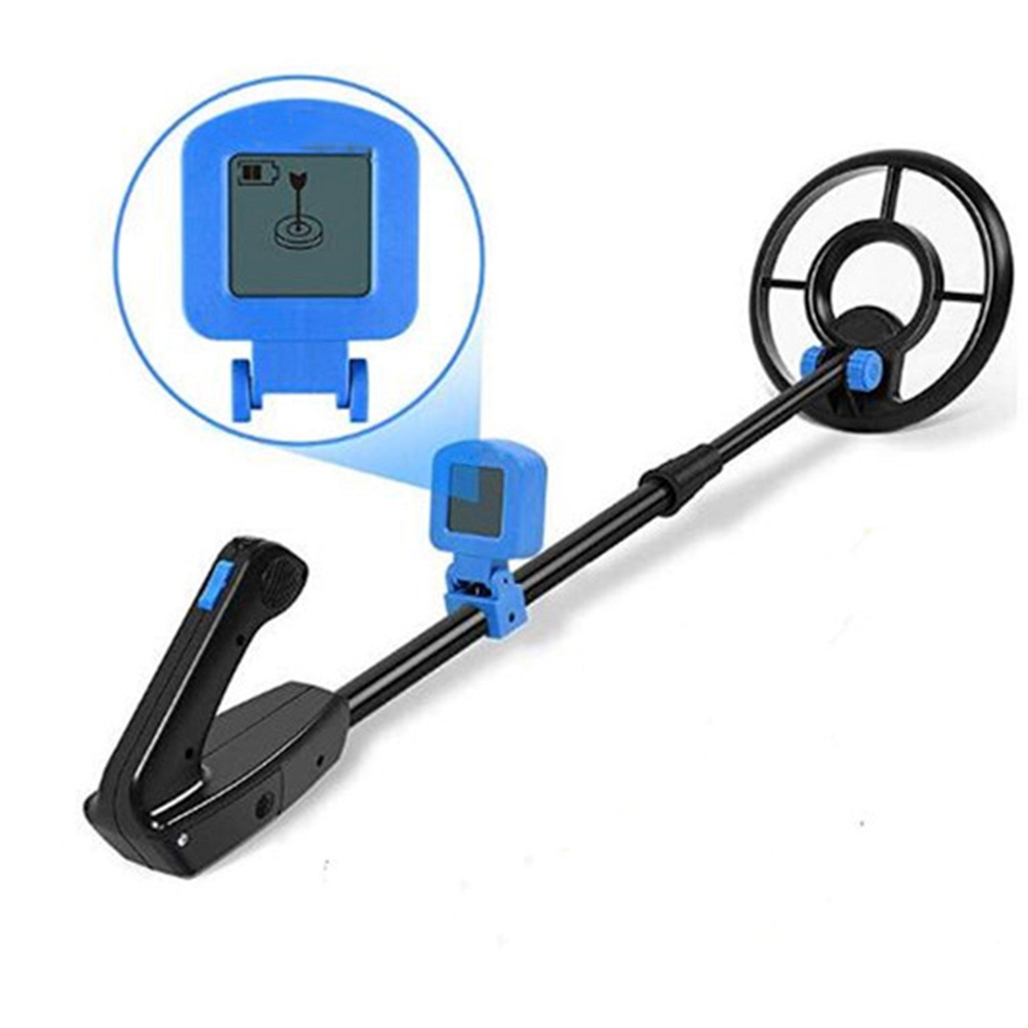 Metaldetektoren for begyndere leveres klar til brug. Det eneste du skal gøre er at justere længden på skaftet så den passer i længde til dig og vinklen på søgekransen samt indsætte det medfølgende 9 volt batteri.