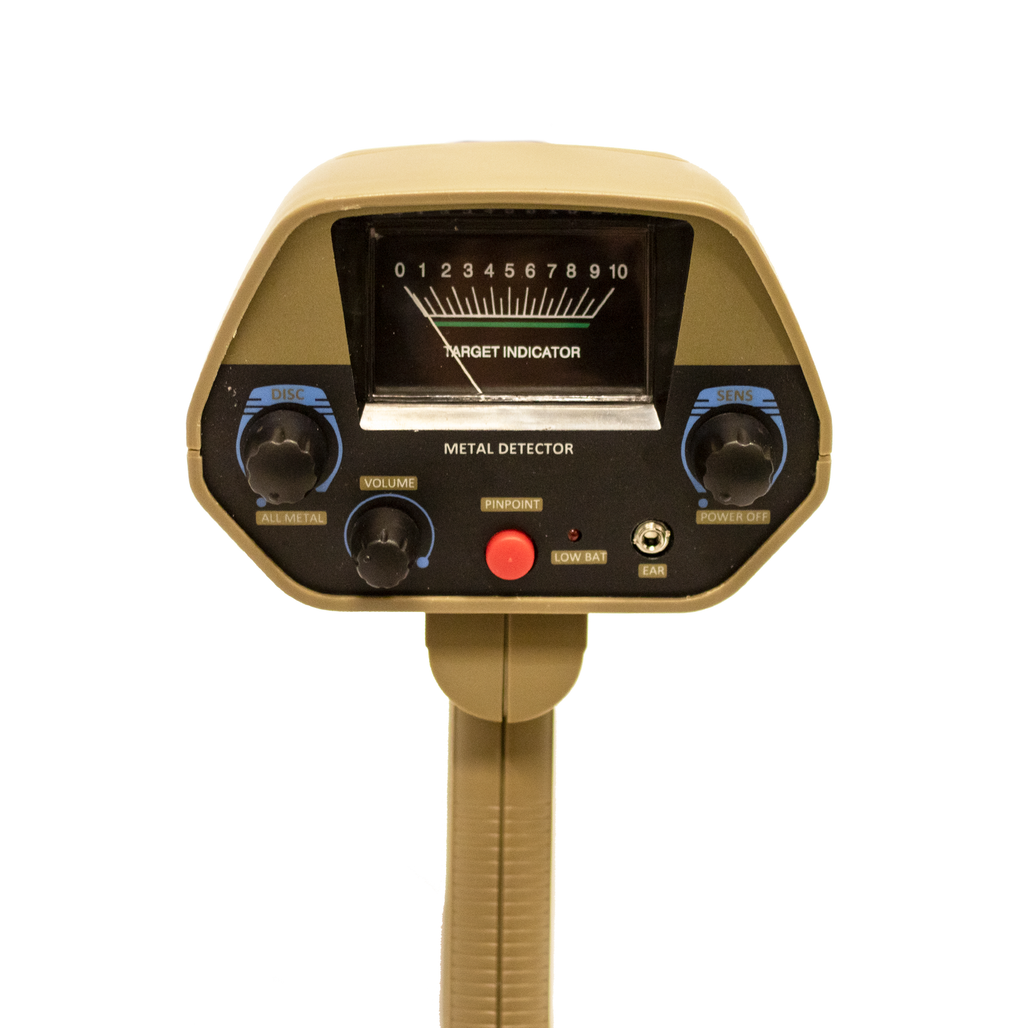 Mål indikator: Viseren svinger til højre, hvis der registreres metal.