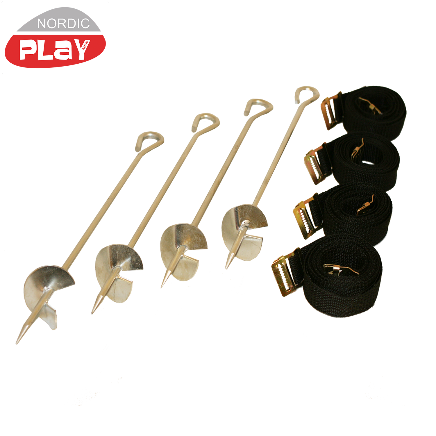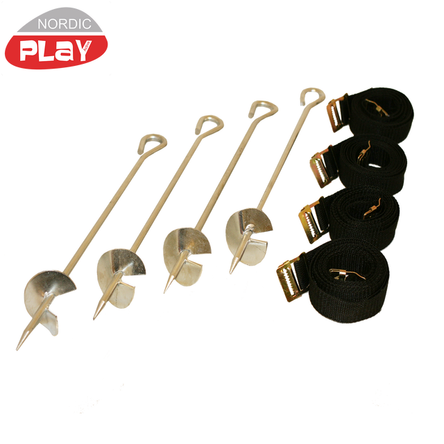 Stormankre 4 stk med tilhørende stropper. Anvendes bl.a. til stormsikring af trampoliner.